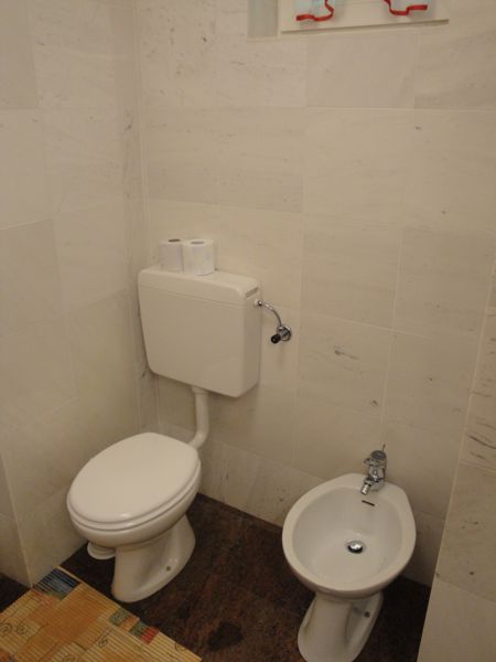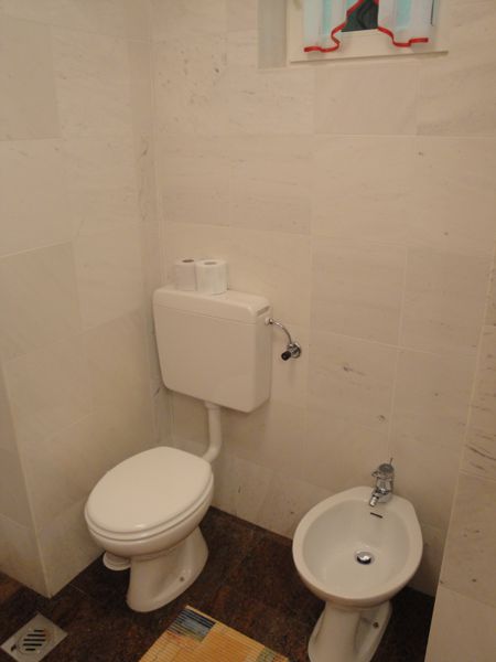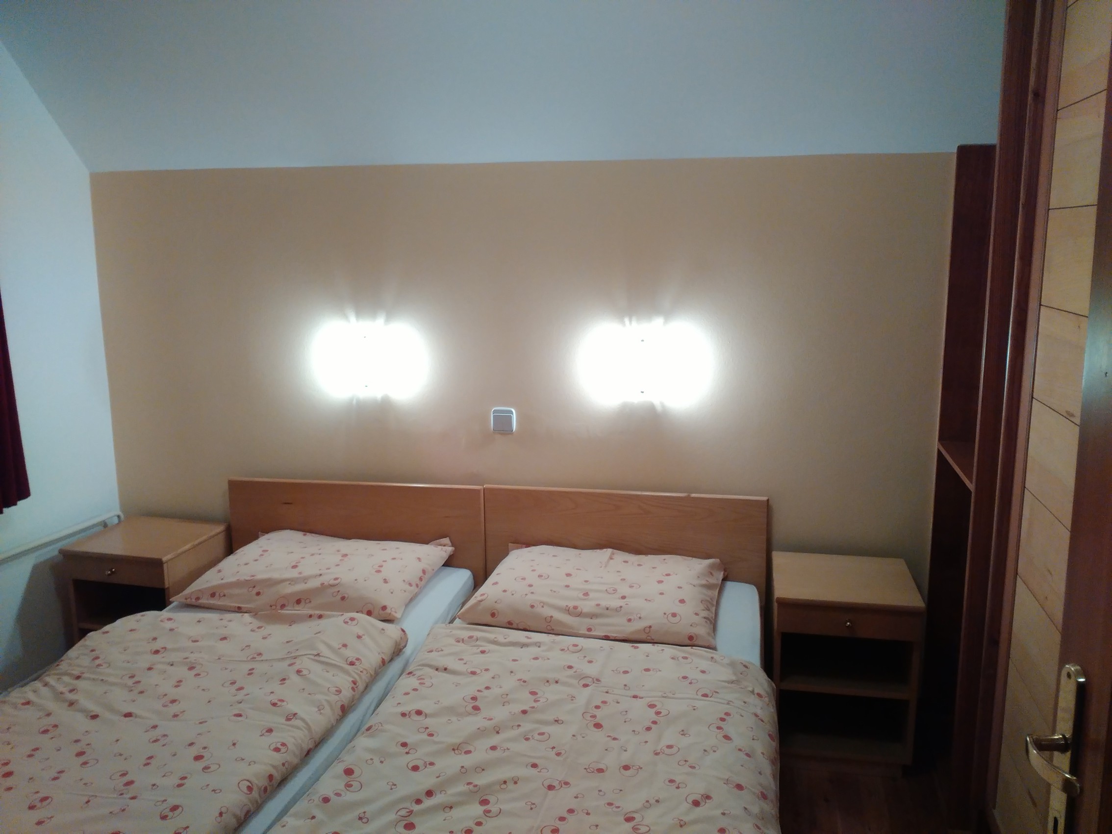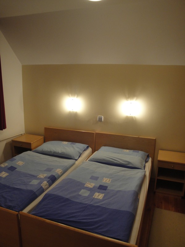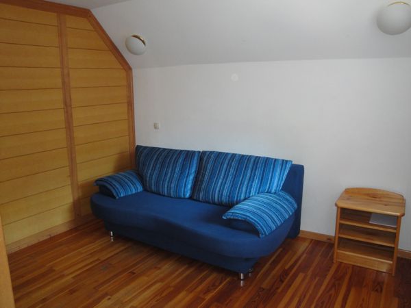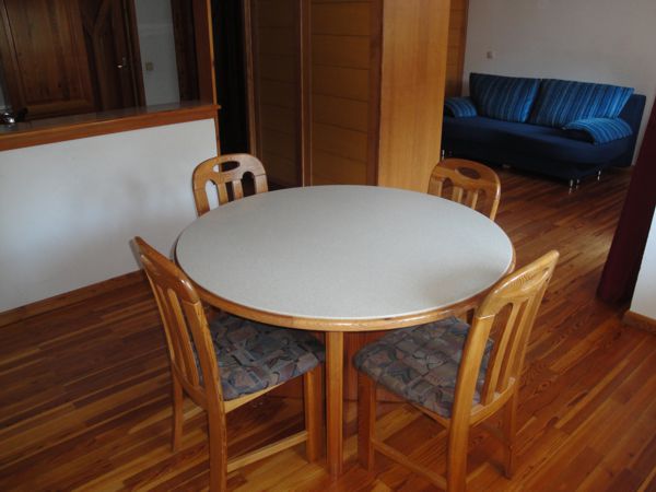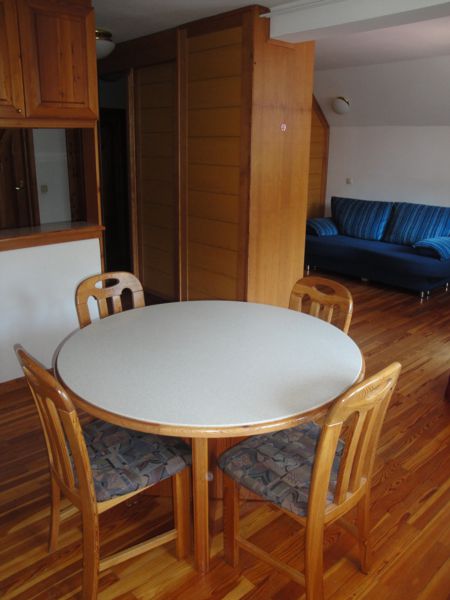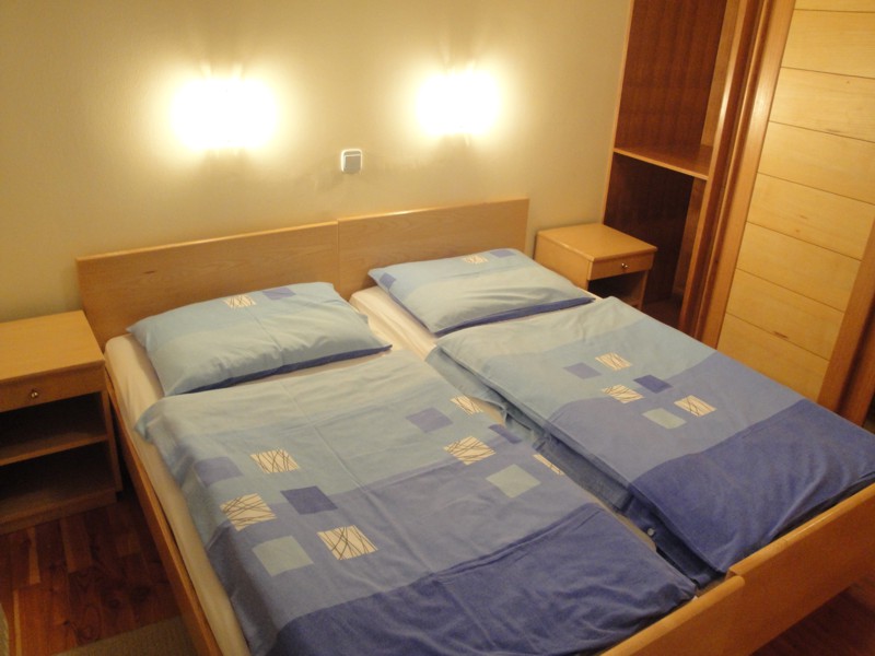 Apartma 1 · Spalnica ( 2 ležišči – zakonska postelja) · Kopalnica ( wc, tuš ) · Kuhinja ( steklokeramična plošča,pečica,hladilnik z zamrzovalnikom ) · Jedilni kot · Dnevni prostor ( 2 ležišči – raztegljiv trosed ) · balkon