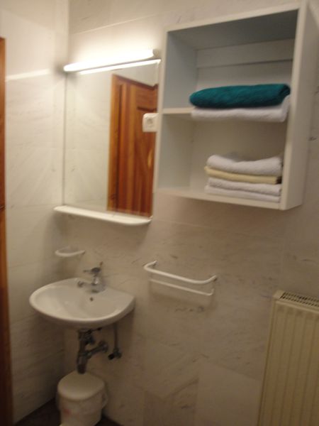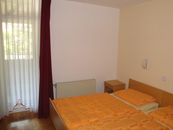 Apartma 4 Spalnica ( 2 ležišči – zakonska postelja) Kopalnica ( wc, tuš ) Kuhinja ( steklokeramična plošča,pečica,hladilnik z zamrzovalnikom ) Jedilni kot Dnevni prostor ( 2 ležišči – raztegljiv trosed ) Balkon Terasa